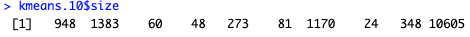 kmeans.10 <- kmeans(matrix2, centers = 10)